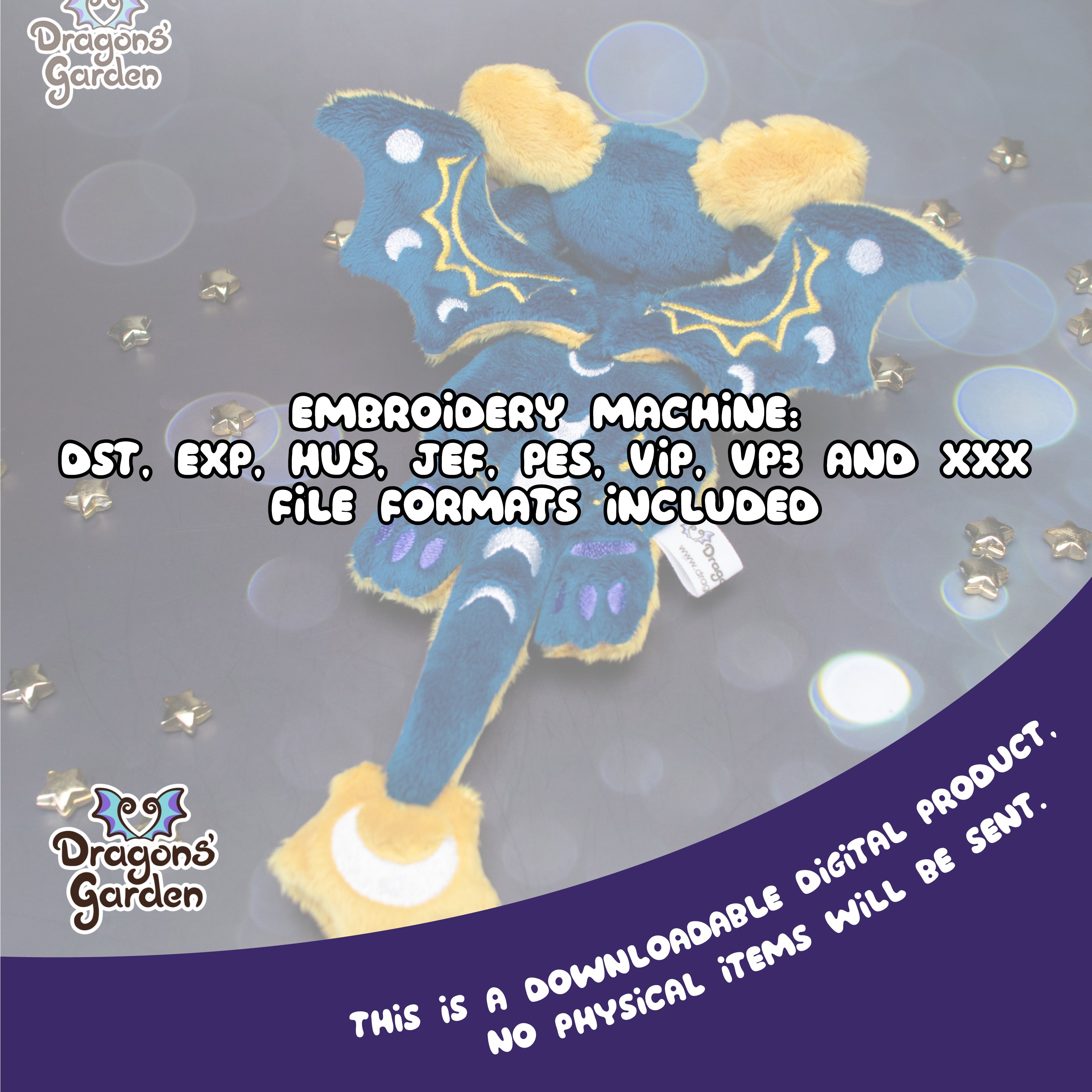 A gentle guide through dreams, she carries the whispers of the cosmos wherever she goes... Now, stitched into plush form, this full In the Hoop Embroidery Pattern lets you bring her celestial glow to life. 🐲